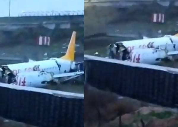 El avión de la compañía Pegasus Airlines procedía de la ciudad costera de Esmirna cuando en un "violento aterrizaje" en el aeropuerto de Sabiha Gokcen se salió de la pista en medio de fuertes vientos e intensas lluvias, informó la cadena NTV.