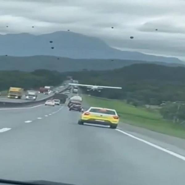 Una avioneta en apuros aterriza en medio de automóviles en una carretera al sur de Brasil