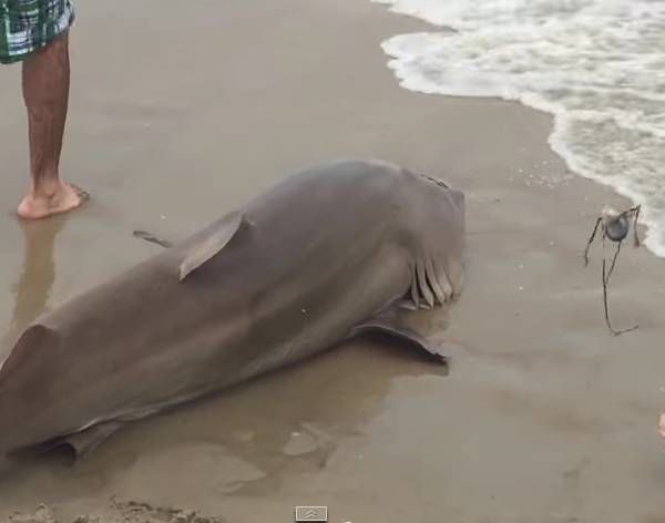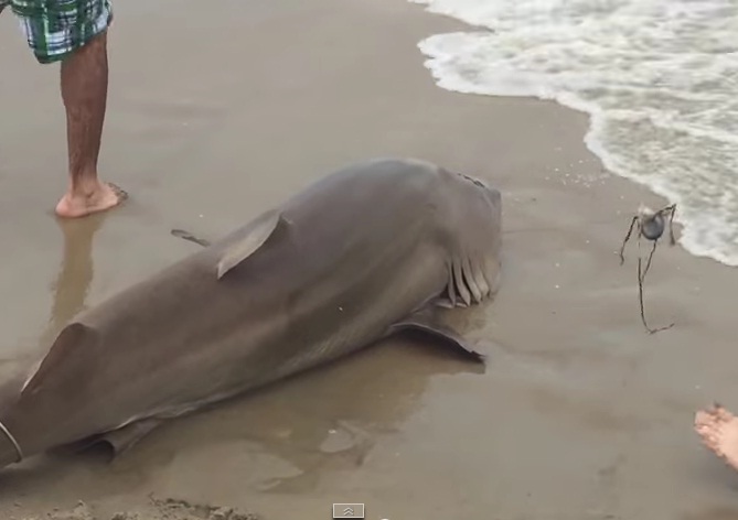 Bañistas de California capturan un tiburón y lo arrastran hacia la playa en Carova Beach, al norte de California. Lo que más impresión da es que se trata de una playa en la que se bañan y disfrutan familias enteras. El video está siendo muy compartido y comentado en redes sociales.