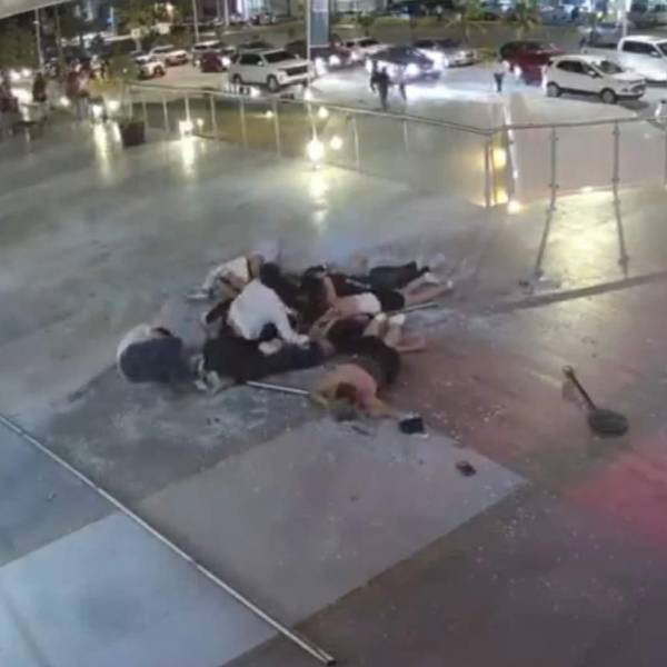 El hecho ocurrió luego de que un barandal de cristal del tercer piso del bar se venció, mientras el establecimiento reventaba de gente en su interior y muchos más esperaban a poder entrar.