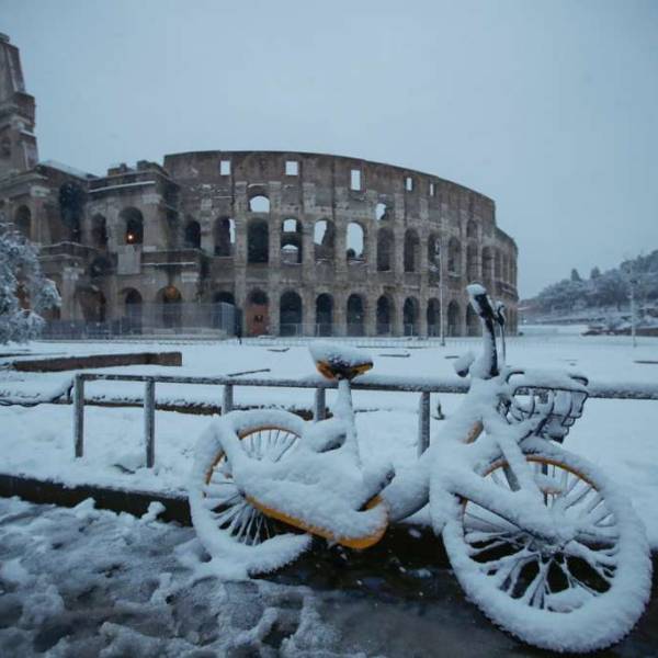 La "Bestia del Este", como la llama la prensa inglesa, cubrió de nieve Roma, donde nevó por primera vez en seis años, alimentada por vientos gélidos provenientes de Rusia, hará caer las temperaturas a niveles inusuales en varias partes de Europa.