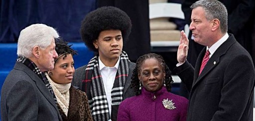 De Blasio realizó el juramento ante el expresidente Bill Clinton, quien sostenía una biblia.
