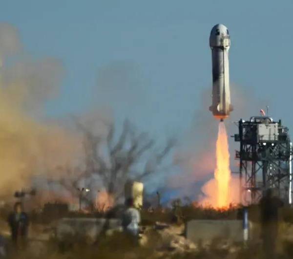 Imagen del cohete New Shepard, el previo lanzamiento de la compañía Blue Origin. ( )