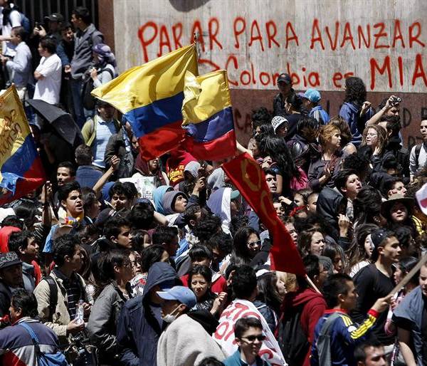 Pero en las primeras horas de la tarde estalló la violencia en el centro de Bogotá en forma de encontronazos entre grupos de estudiantes encapuchados y los escuadrones antidisturbios de la policía.