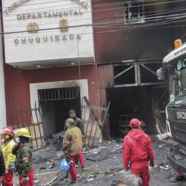 El paro general indefinido sigue a una ola de disturbios cuando quemaron oficinas electorales en Sucre. Foto: AFP