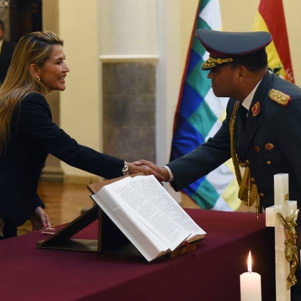 "No hay un golpe de Estado en Bolivia, hay una reposición constitucional", afirmó Áñez en una rueda de prensa en el Palacio Quemado, la casa de gobierno, al día siguiente de asumir el poder. La dirigente reiteró que convocará a elecciones "en el plazo más breve posible".