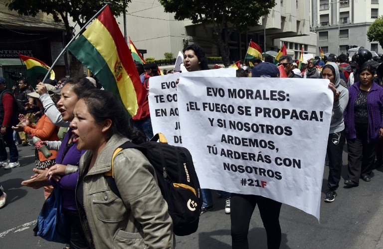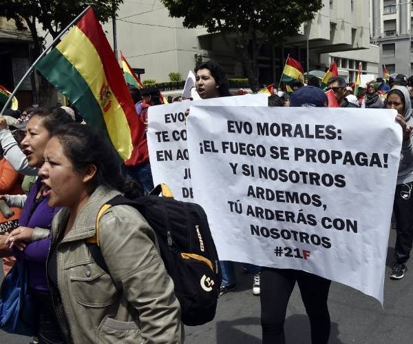 Bolivianos protestan contra postulación de Morales. Foto: AFP
