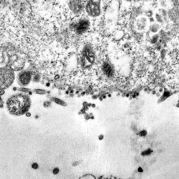 En una de las instantáneas se observa una serie de puntos oscuros, que en realidad son partículas virales del patógeno, intentando infectar el citoplasma de la célula, en cuyo interior se encuentra el núcleo, responsable de guardar el material genético de la misma.