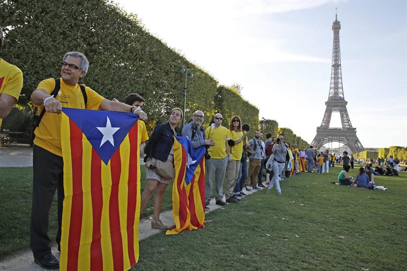 Cientos de miles de personas, según diversas fuentes, participaron hoy en una cadena humana de unos 400 kilómetros que atravesó de norte a sur la región de Cataluña, en el noreste de España, para pedir la independencia y la celebración de un referéndum.