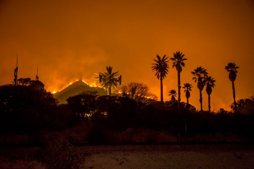El feroz incendio en las laderas del condado de Ventura en California. Foto:AFP