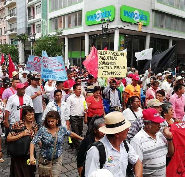 Un grupo de manifestantes del sector campesino elevó este 30 de enero de 2019, su voz de rechazo a las medidas económicas del Gobierno. La protesta inició en los alrededores del parque Centenario, avanzó por la avenida 9 de Octubre y se dirigió hacia la Caja del Seguro.