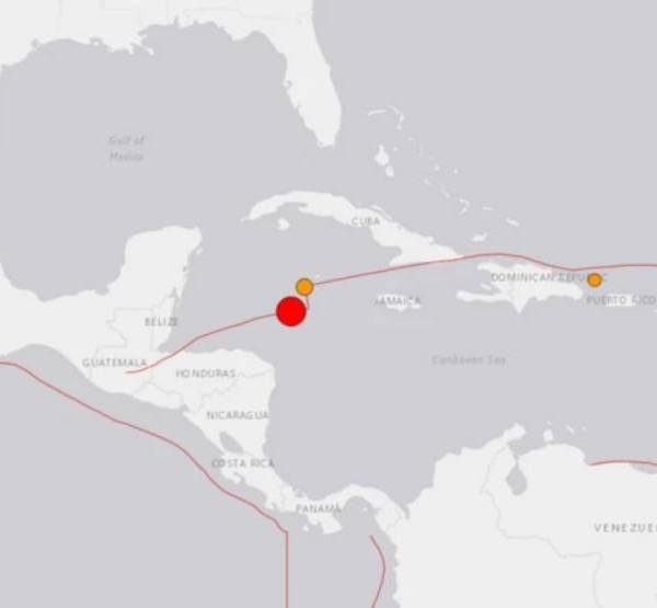 Las autoridades afirman que el epicentro del terremoto fue a unos 32,1 km al norte de Honduras y a 209,2 km al suroeste de las Islas Caimán.