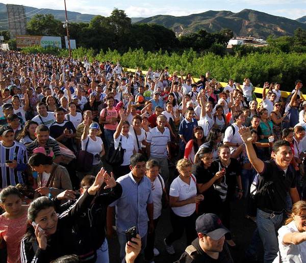 La marea humana atravesó los puentes internacionales Simón Bolívar, que une a la ciudad venezolana de San Antonio del Táchira con Cúcuta, capital del departamento de Norte de Santander, y por el Francisco de Paula Santander, que comunica a esta urbe colombiana con la vecina Ureña.