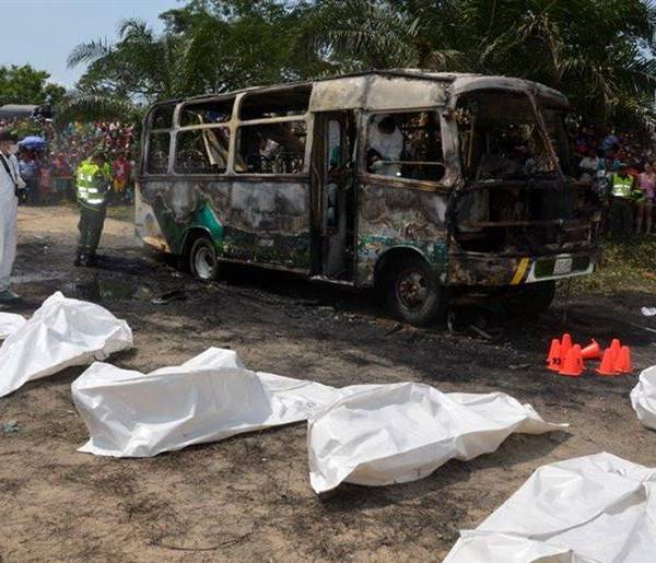 El incendio en el que murieron los niños se produjo a mediados de mayo en el municipio de Fundación en el caribe colombiano, cuando el autobús que según versiones de medios locales transportaba 43 personas, estalló en llamas y en cuestión de minutos fue totalmente consumido por el fuego.