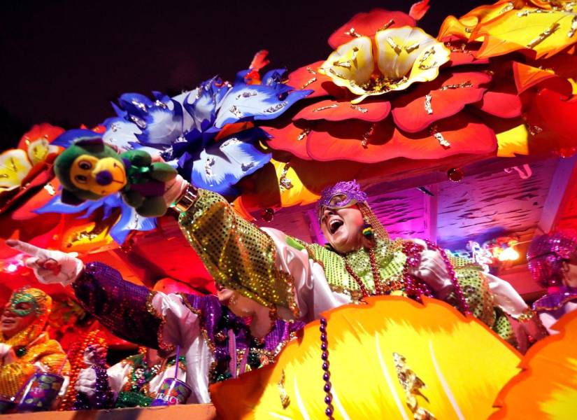 El Mardi Gras en Nueva Orleans es sinónimo de diversión desenfrenada y cultura. Este carnaval, que se extiende del 6 de enero al 9 de marzo, es famoso por sus desfiles organizados por las krewes, sociedades que lanzan throws, regalos al público. como collares de cuentas, peluches, cocos pintados y copas doradas. La ciudad cobra vida, especialmente en Bourbon Street, donde los locales y turistas disfrutan del ambiente relajado y alegre de la fiesta, que incluye música en vivo, especialmente jazz y blues.