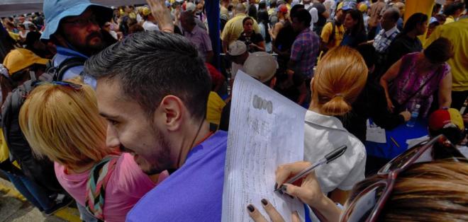 El 2 de mayo, la Mesa de la Unidad Democrática entregó 1,8 millones de rúbricas al CNE.