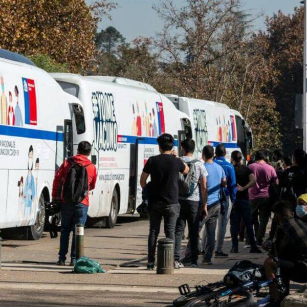 En Chile, parte del cambio de estrategia implementado para acelerar la inoculación son estos puntos de vacunación masiva, como el de la foto, en distinto parques y lugares de fácil acceso.( )