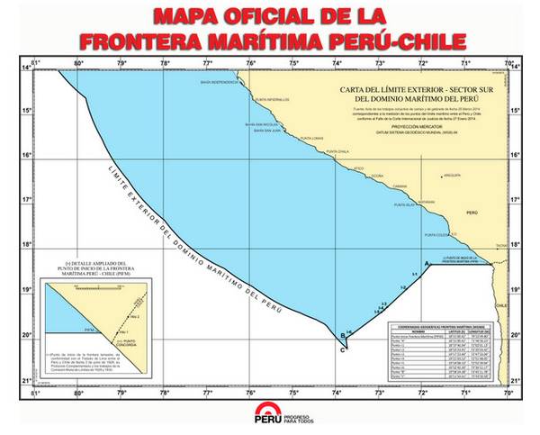 "La fijación de las coordenadas incluidas en la cartografía es el resultado de una labor conjunta desarrollada por el Grupo de Trabajo Técnico y Cartográfico Chileno - Peruano, en cumplimiento de la sentencia de la Corte Internacional de Justicia de La Haya de 27 de enero del año en curso", recordó el jefe de la diplomacia chilena.