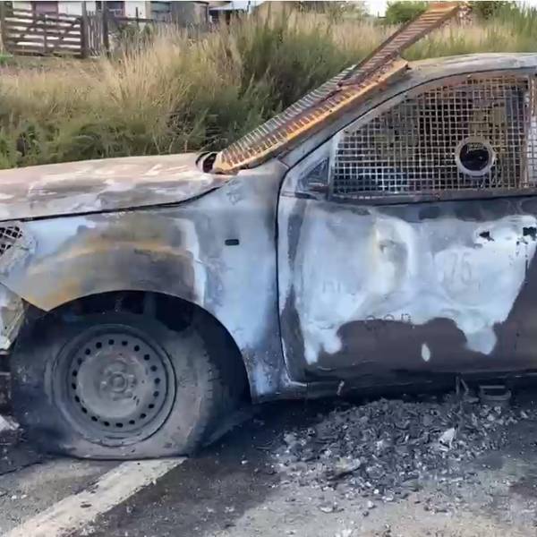 Captura de pantalla de un video cedido por Carabineros de Chile que muestra los peritajes a vehículo policial que resultó quemado, donde fueron emboscados y asesinado tres Carabineros.( )