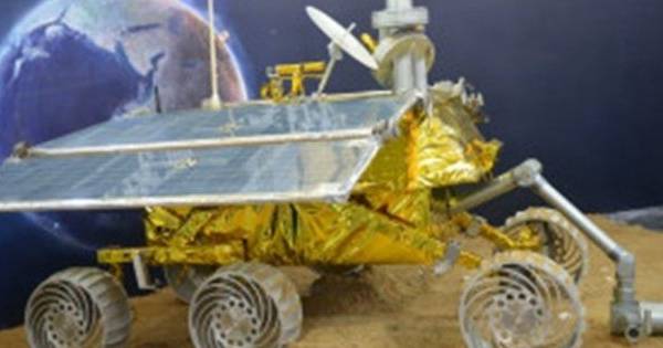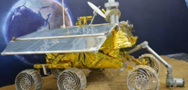 El vehículo, cubierto en lámina dorada, de seis ruedas y paneles solares recibirá órdenes a control remoto para atravesar la superficie lunar, excavar, tomar muestras de rocas y transmitir imágenes de vuelta a la Tierra.