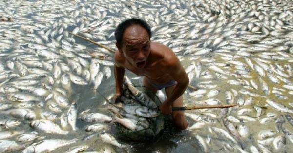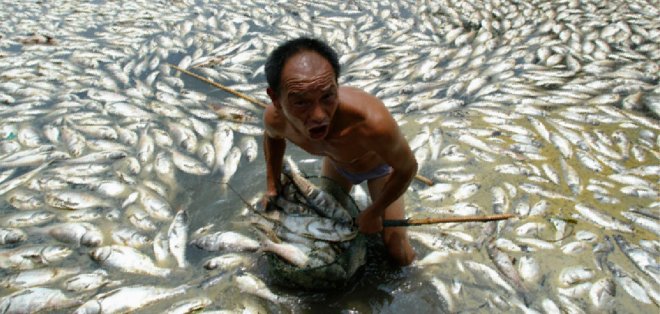 China: retiran de un río 180 toneladas de peces muertos por contaminación