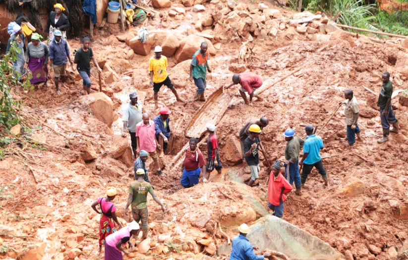 HARARE, Zimbabue.- Una familia ayuda a excavar para localizar a un hijo que fue sepultado en el lodo