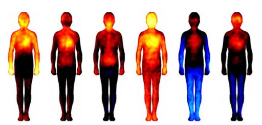 También se puede ver que, en general, todas las emociones básicas activan sensaciones en la parte superior del cuerpo, donde están los órganos vitales, y especialmente en la cabeza.
