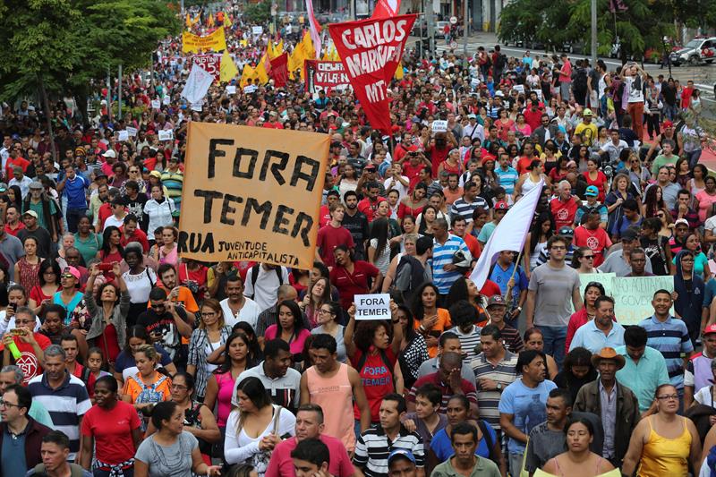 Cientos de ciudadanos se concentraron, este domingo 22 de mayo, en las dos mayores ciudades de Brasil, Sao Paulo y Río de Janeiro, para protestar contra el proceso de "impeachment" (destitución) que llevó a la suspensión de la presidenta Dilma Rousseff, lo que conllevó a que Michel Temer asumiera el cargo de forma interina.