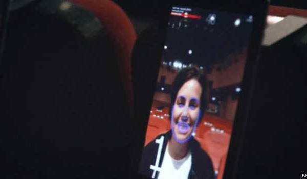 Las tabletas en la parte de atrás de los asientos registran la expresión facial de los asistentes.