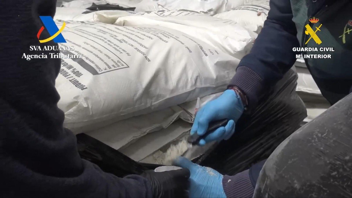 La carga sospechosa estaba formada por sacos de polvo de zeolita --un mineral filtrante y absorbente con diversos usos habituales en agricultura, ganadería o naturopatía-- con un peso de 26 toneladas y distribuidos en 18 palés. Mezclada con esa zeolita, la organización había introducido algo menos de 30 kilos de cocaína.