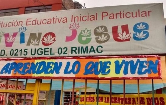 El centro educativo, ubicado en el Rímac (centro del país), ostentaba un colorido cartel adornado por dibujos de hojas de cannabis, que reemplazaban los puntos de las íes en el nombre del colegio, "Divino Jesús", según imágenes difundidas por RPP Noticias.