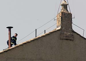 La chimenea, de casi dos metros de altura, fue colocada por personal técnico del Vaticano.