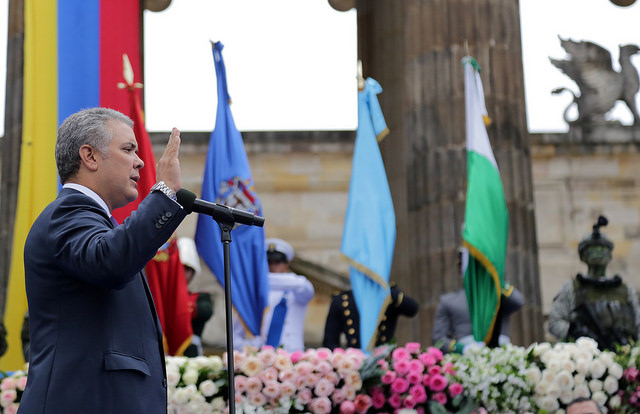 En su posesión, Duque aseveró que “respetará la Carta Democrática Interamericana” y que uno de sus objetivos será denunciar las “dictaduras que pretenden doblegar a sus ciudadanos”, en referencia a la crisis en Venezuela. Por esta situación, Colombia recibe miles de emigrantes de su país vecino por lo que también el gobierno prepara una nueva política migratoria.