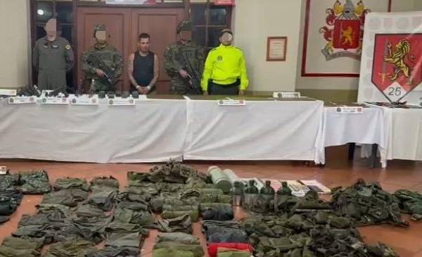 Entre el material decomisado figuran dos fusiles, cuatro pistolas, dos escopetas, dos granadas de mano y un dron, además de equipos de comunicación, medicinas y prendas de uso exclusivo de las Fuerzas Militares. Tanto el capturado como los elementos incautados fueron puestos a disposición de las autoridades competentes.