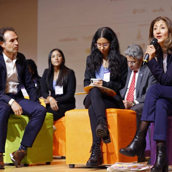 Los candidatos Íngrid Betancourt (der.) y Federico Gutiérrez (izq.) en la Universidad de Los Andes. ( )
