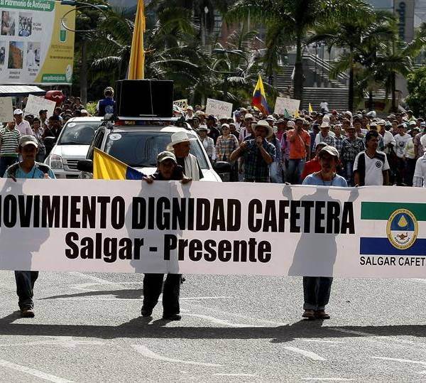 La huelga indefinida empezó el lunes, y fue convocada por el movimiento Dignidad Cafetera y secundada por otros sectores del campo, los camioneros y los trabajadores de la salud en Colombia, en demanda de atención gubernamental, subsidios y otras peticiones.