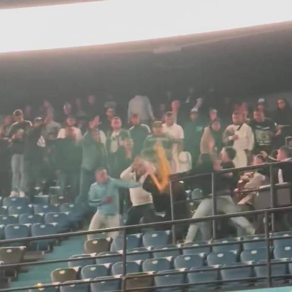 Al parecer, todo comenzó con una riña entre hinchas de equipos de fútbol y se convirtió rápidamente en una batalla campal en frente del Movistar Arena, lo que obligó a una unidad antidisturbios de la policía a intervenir.