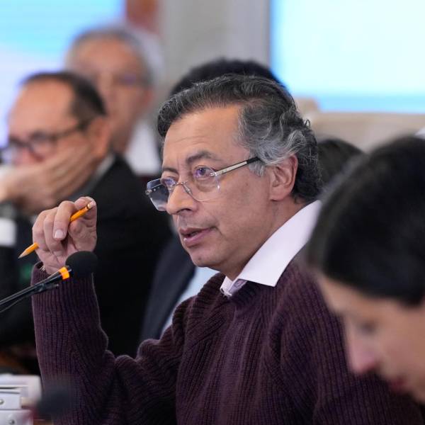 Fotografía cedida por la Presidencia de Colombia del mandatario, Gustavo Petro, hablando durante un Consejo de Ministros, en Bogotá, Colombia.( )