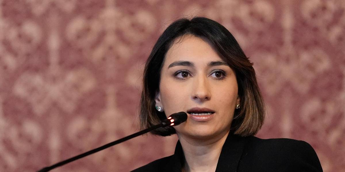 La ministra de Relaciones Exteriores de Colombia, Laura Sarabia, habla durante una conferencia de prensa conjunta con la secretaria de Seguridad Nacional de Estados Unidos.( )