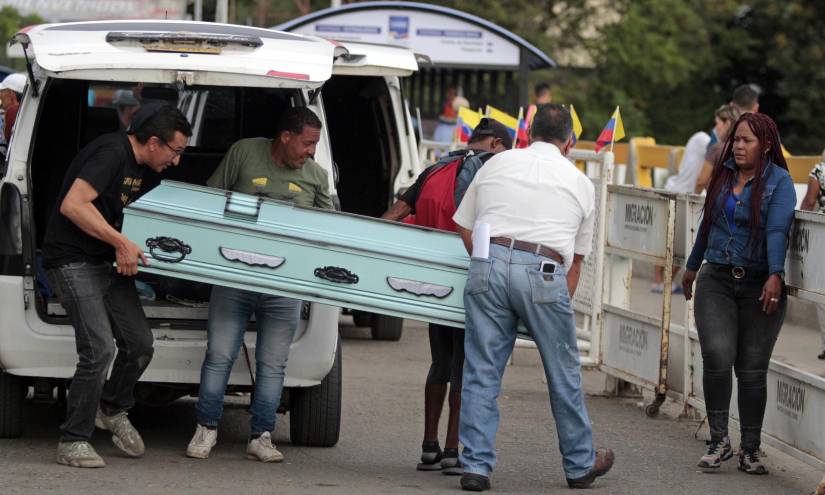 Miembros de la Guardia Nacional Bolivariana de Venezuela patrullan el Puente Internacional Simón Bolívar.( )
