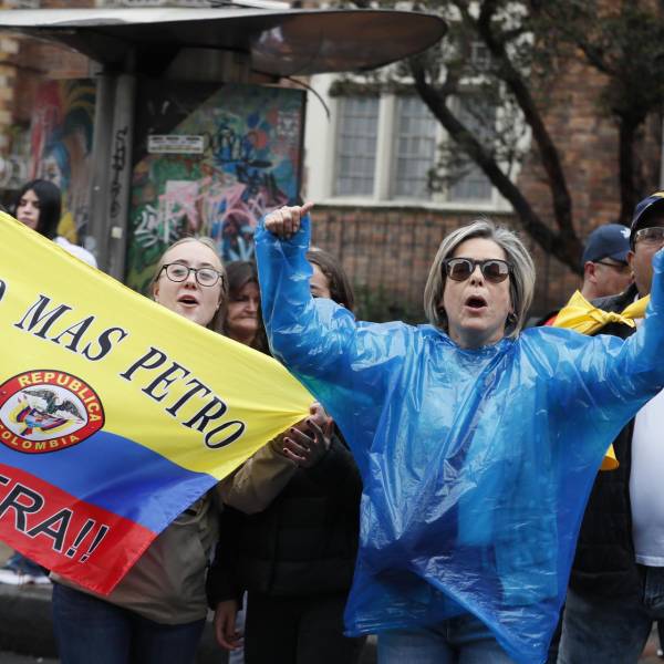 En Chía, ciudad ubicada cerca de la capital, una multitud gritaba mensajes en contra del presidente, mientras se dirigían a la residencia privada de Petro.