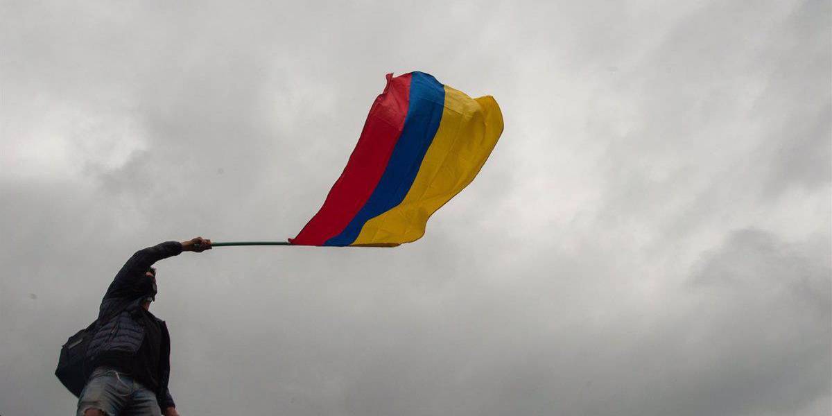 Un joven ondea la bandera de Colombia durante las útimas movilizaciones y protestas contra el Gobierno de Iván Duque( )