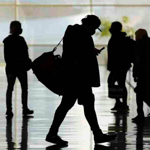 Varios pasajeros caminan el 27 de octubre de 2020 por el Aeropuerto Internacional de Salt Lake City. (AP Foto/Rick Bowmer, archivo)