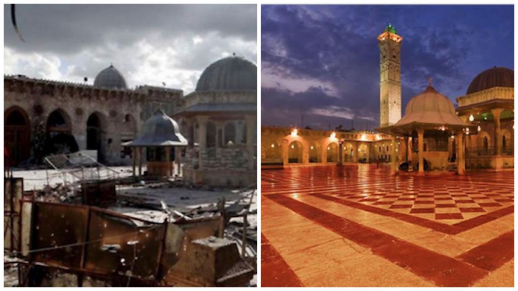 Esta es una foto de la misma zona patrimonial de Alepo, antes y después de la guerra en Siria. Foto: Collage creado.
