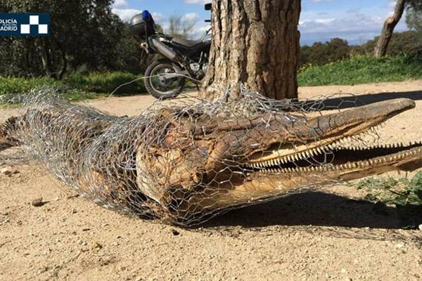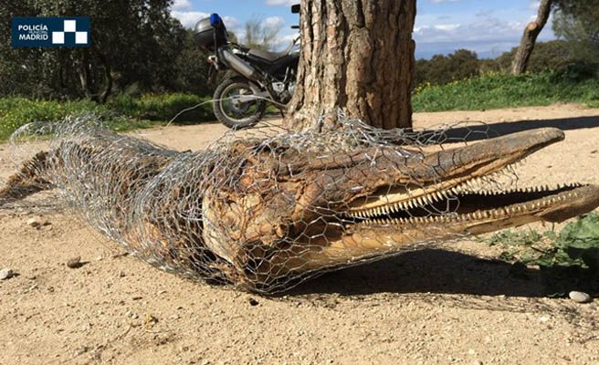 La misteriosa aparición de un delfín en una zona de la Casa de Campo de Madrid (España) está siendo investigada por la Unidad de Medio Ambiente de la Policía Municipal (UAM) después de que un hombre lo encontrara gracias al olfato de sus perros en el kilómetro 27 de un carril de bicicleta en la carretera de Boadilla del Monte. Nunca antes se habían encontrado nada parecido y menos en esas condiciones, atado con una malla metálica y completamente descompuesto.