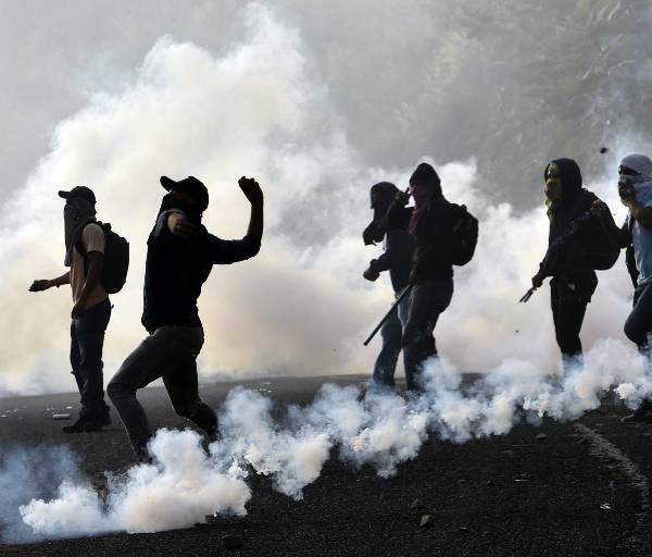 Compañeros de los 43 estudiantes mexicanos desaparecidos lanzaron este martes 22 de septiembre cócteles molotov contra policías estatales de Guerrero (sur) que les bloqueaban el paso para realizar una protesta y les lanzaran gases, en un nuevo episodio violento a días del aniversario del crimen.