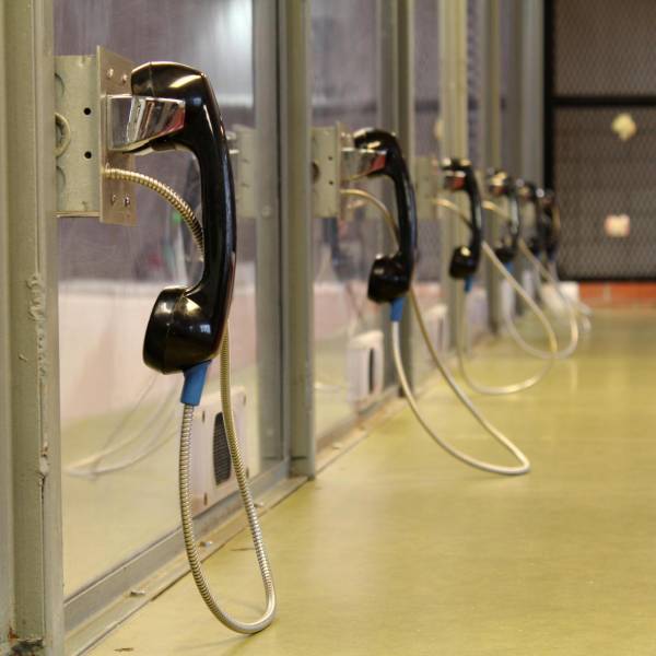 Fotografía de archivo en donde se aprecia un plano detalle de los teléfonos de la sala de visitas a los presos en una cárcel de Estados Unidos. ( )