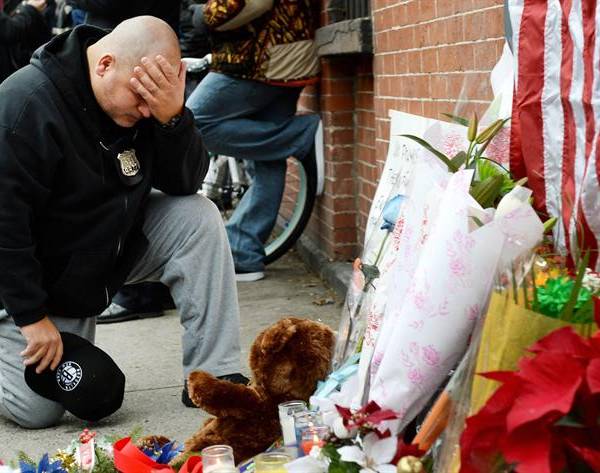Los dos policías, Wenjian Liu, de 32 años y recién casado, y Rafael Ramos, de 40 y con un hijo de 13, fueron asesinados a sangre fría con disparos en la cabeza cuando se encontraban en su patrulla estacionada frente a un conjunto de viviendas sociales en Brooklyn el sábado por la tarde.