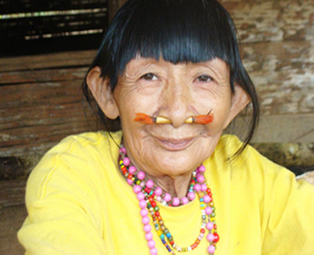 La mujer delgada, de tez morena curtida por el sol y por los años y de cabello largo y liso recogido en una coleta, era la mayor de los indígenas pacahuaras y la única que mantenía algunos rasgos característicos de su tribu, como su corte de pelo con un flequillo desfilado por los lados y un canuto de tacuara -una especie de bambú- en la nariz del que sobresalían dos plumas rojas.