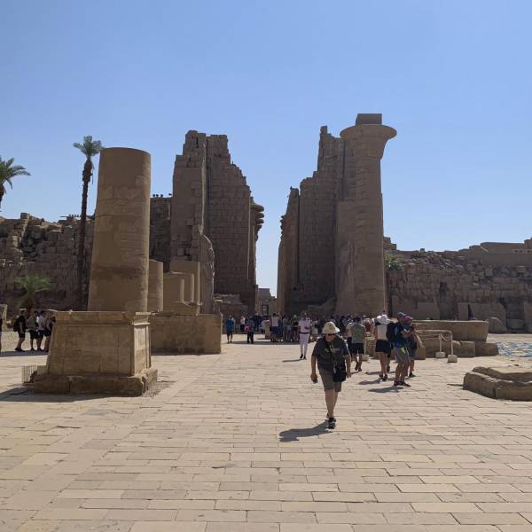 Entrada del complejo funerario de Karnak, en Luxor, donde centenares de personas van a adorar a los dioses antiguos egipcios. EFE/Shady Roshdy( )